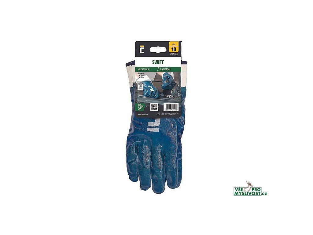 • rukavice šité z bavlněného úpletu • celomáčené v nitrilu • pevná manžeta