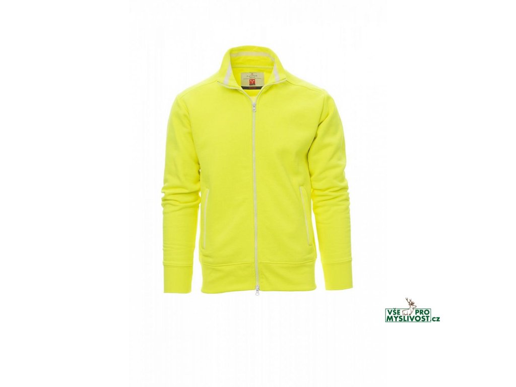 Pánská mikina s plastovým celozipem SBS v kontrastní barvě, s dvojitým kovovým jezdcem, žebrovaný krk s kontrastním lemem, postranní kapsy s kontrastním lemováním, všívané rukávy, dvě vnější kapsy s kontrastním zipem, manžety a pas s elastickým žebrováním, zesílené švy.