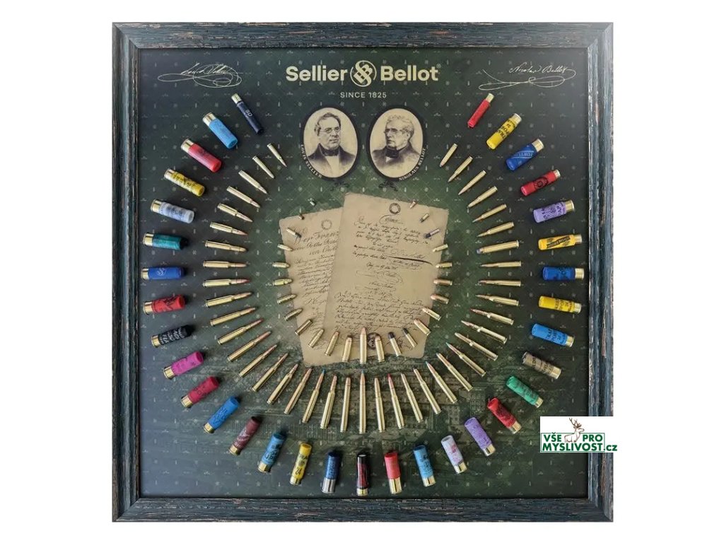 Exkluzivní tablo GRAND Sellier & Bellot představuje širokou škálu brokových i kulových nábojů tohoto tradičního českého výrobce. V elegantním dřevěném rámu jsou přehledně uspořádány reálné brokové patrony různých ráží spolu s kulovými náboji, čímž vzniká atraktivní kompozice doplněná historickými motivy značky.
