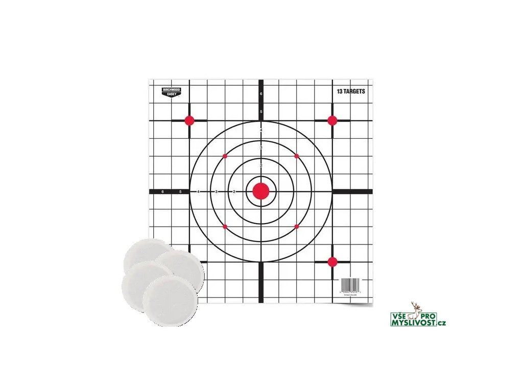 - 4 nastřelovací terče o rozměru 30,5 x 30,5 cm: Mřížkované provedení s výrazným středem pomáhá přesněji zacílit a provést jemné úpravy zaměřovače.