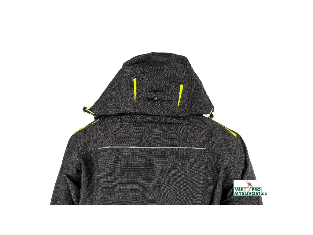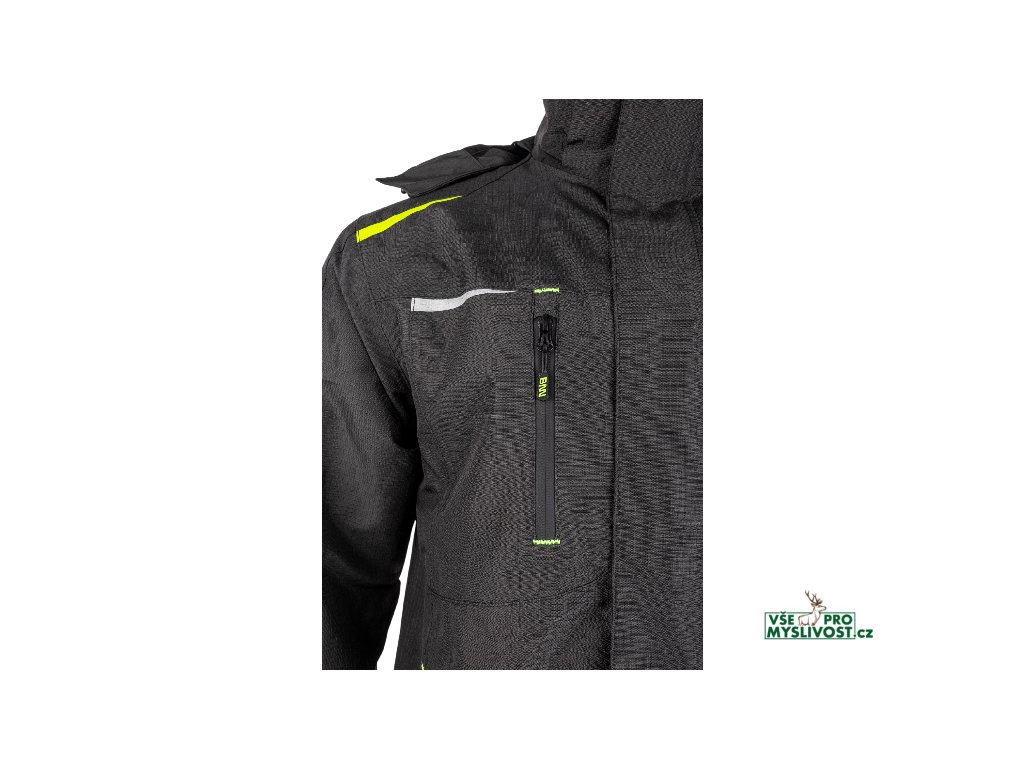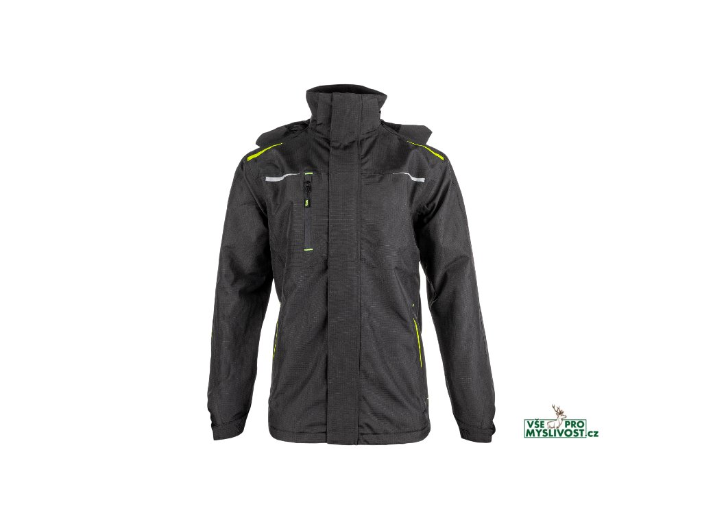 Odolná zimní bunda RIPSTOP materiál, který se vyznačuje pevností, odolností a lehkostí Vodní sloupec 5000 mm, prodyšnost 3000 g/m2/24h. reflexní prvky na prsou a zádech pro lepší viditelnost vodoodpudivý zátěr vrchového materiálu nastavitelná a odepínací kapuce (možnost kapuci sbalit do límce) odolnost vůči větru i vodě 3 kapsy na zip nastavitelná šířka manžet rukávů pomocí suchého zipu využití pro práci i volný čas