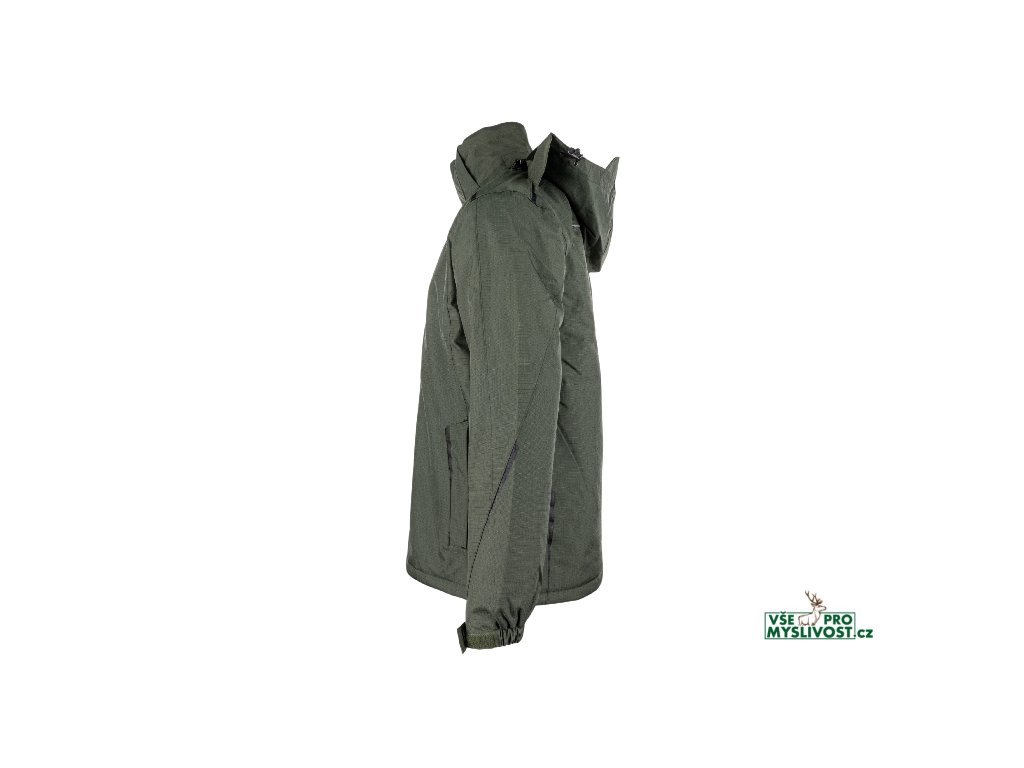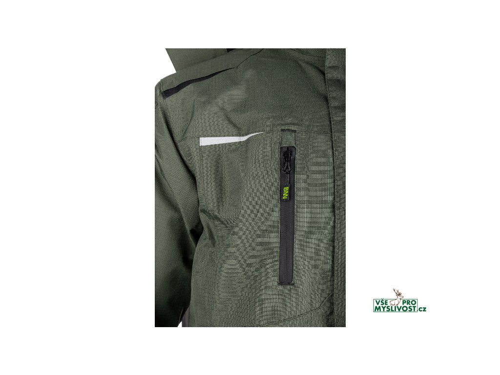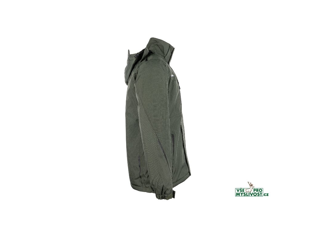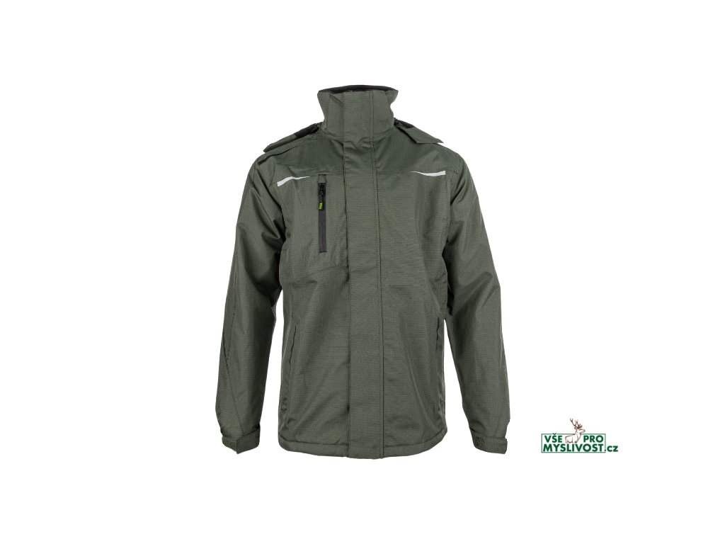 Odolná zimní bunda RIPSTOP materiál, který se vyznačuje pevností, odolností a lehkostí Vodní sloupec 5000 mm, prodyšnost 3000 g/m2/24h. reflexní prvky na prsou a zádech pro lepší viditelnost vodoodpudivý zátěr vrchového materiálu nastavitelná a odepínací kapuce (možnost kapuci sbalit do límce) odolnost vůči větru i vodě 3 kapsy na zip nastavitelná šířka manžet rukávů pomocí suchého zipu využití pro práci i volný čas