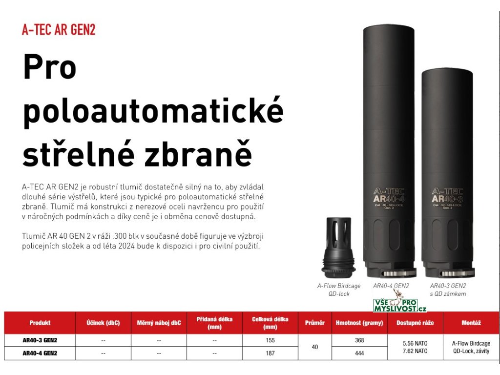 Tlumič A-TEC, AR 40-4 GEN2, Cerakote ráže do .30" (7,62mm), na A-Flow Birdcage QD Lock