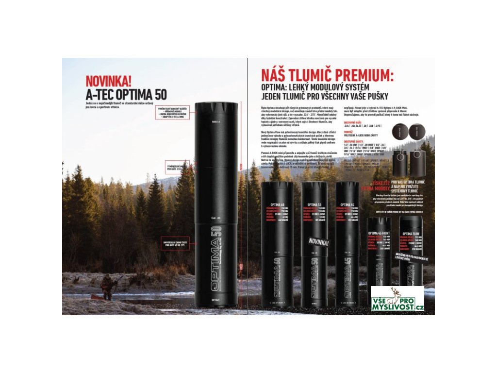 Řada A-TEC Optima zahrnuje několik prémiových modelů s modulárním designem. Všechny modely umožňují výměnu předního modulu, takže jeden tlumič lze upravit pro různé ráže pomocí sad modulů (.224" – .375"). Hybridní konstrukce kombinuje zpevněnou hliníkovou slitinu odolnou vůči vysokým teplotám s nerezovým ocelovým jádrem pro dlouhou životnost.