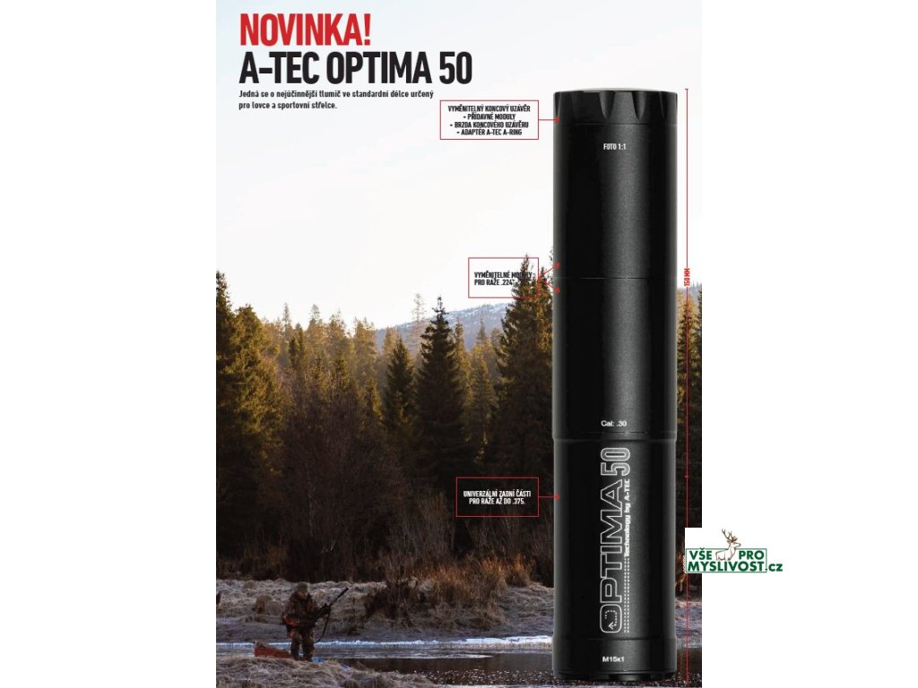 Tlumič A-TEC, model OPTIMA 50, modulový, pro ráže do .30" (7,62mm), na závit M16x1mm