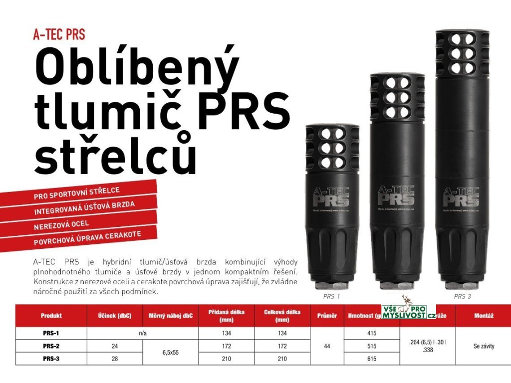 A-TEC PRS 2 MOD nový Hybridní tlumič, pro sportovní, taktické, opakovací pušky na přesnou střelbu na dlouhé vzdálenosti (PRS), který kombinuje tlumič s úsťovou brzdou. Úsťová brzda navíc významně snižuje zpětný ráz zbraně.