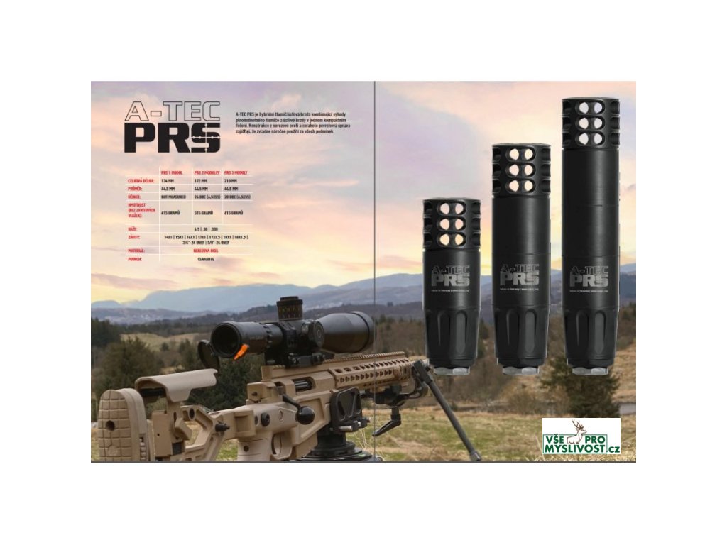 A-TEC PRS 3 MOD nový Hybridní tlumič, pro sportovní, taktické, opakovací pušky na přesnou střelbu na dlouhé vzdálenosti (PRS), který kombinuje tlumič s úsťovou brzdou. Úsťová brzda navíc významně snižuje zpětný ráz zbraně
