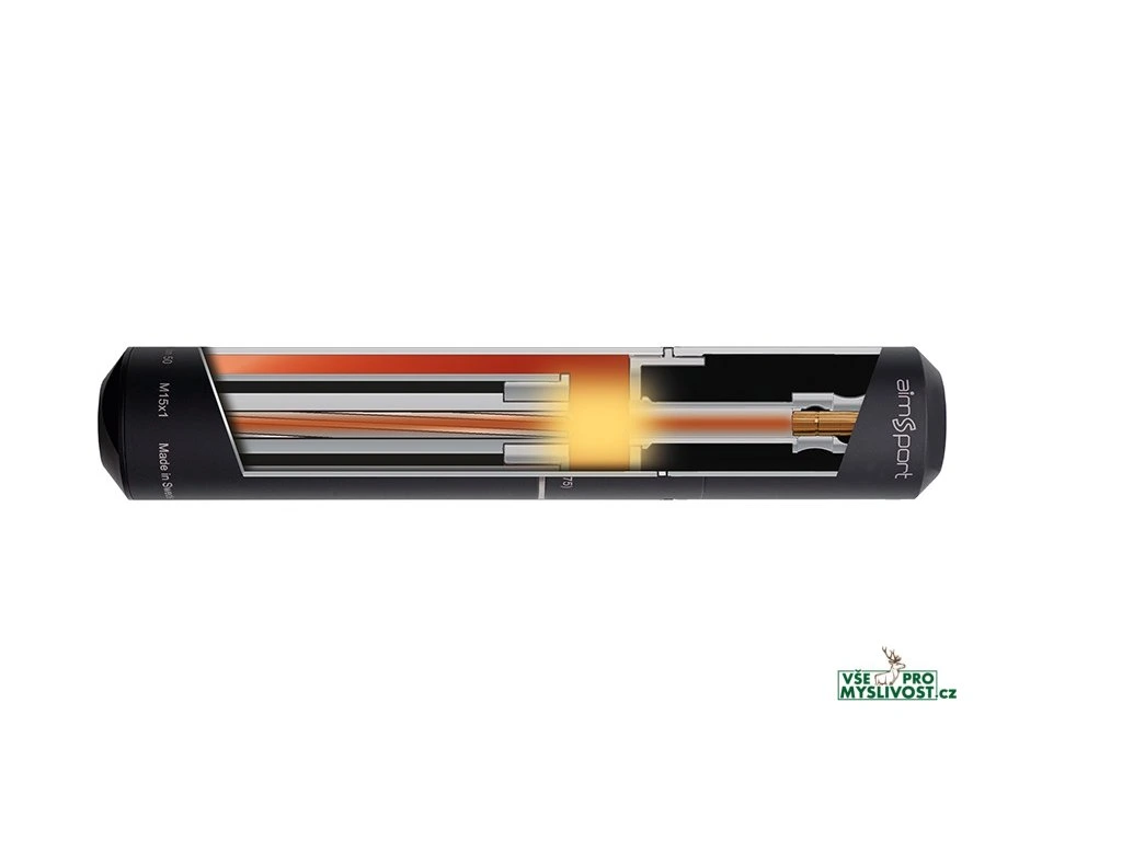 Každý z tlumičů na dlouhé zbraně řady AIMSPORT Triton No. 4.,5.,6. lze rozšroubovat na dvě části přední/zadní. Vybrat si lze tlumič pro správný závit, a pro několik ráží zbraní.