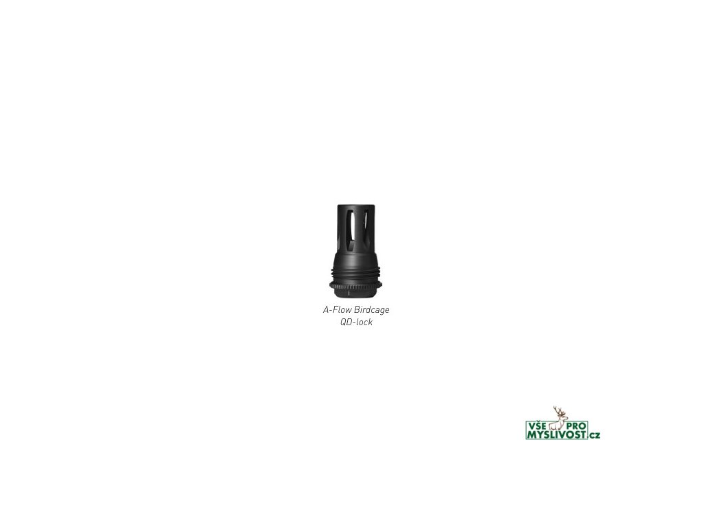 Tlumič výšlehu s novým systémem uzamykání QD Lock pro tlumiče A-FLOW. A-FLOW je tlumič i pro automatické zbraně. Patentovaná technologie vytváří menší protitlak a menší opotřebení zbraňového systému. Koaxiální design vede rozpínající se plyn od vývrtu a zabraňuje zpětnému tlaku z vyhazovacího okénka. Tato technologie eliminuje problém se zpětným tlakem v okolí uživatele a výrazně snižuje zpětný ráz a akustický tlak. Díky tomu je A-FLOW mnohem oblíbenější než konkurenční tlumiče. A-Flow zvyšuje schopnost uživatele vykonat daný úkol.