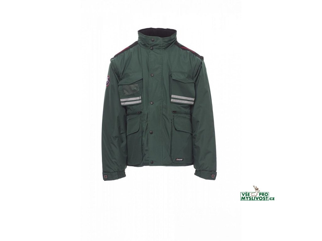 Pánská bunda s 8mm plastovým zipem s kovovým jezdcem zakrytým klopou s plastovými knoflíky, odepínací rukávy, odepínatelná tvarovaná kapuce v límci, stahovací manžety, šedé reflexní pruhy na přední a zadní straně, předformované rukávy v oblasti loktů a boční rozparky s klínkem a zipem, devět vnějších kapes, z nichž dvě s LOCK SYSTEMem a vyztuženým vnitřkem, jedna s oboustranným pouzdrem na jmenovku. Vnitřek: zateplení, mikroflísový límec, záda a spodní část, prodyšné vsadky v podpaží, stahovací šňůrka v pase a zip na vnitřní straně pro snadnější potisk a vyšívání.