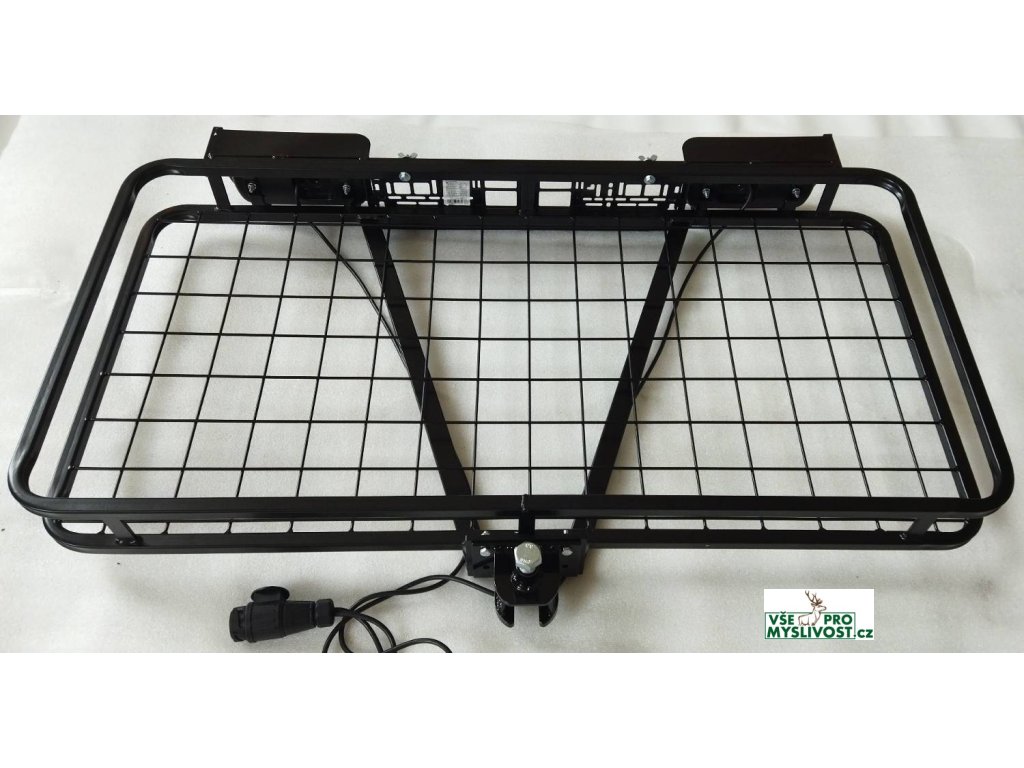Univerzální homologovaný zadní nosič na kouli tažného zařízení, např. i na zvěř či krmivo s ochranným světelným panelem a šroubovou NEsklopnou hlavicí.