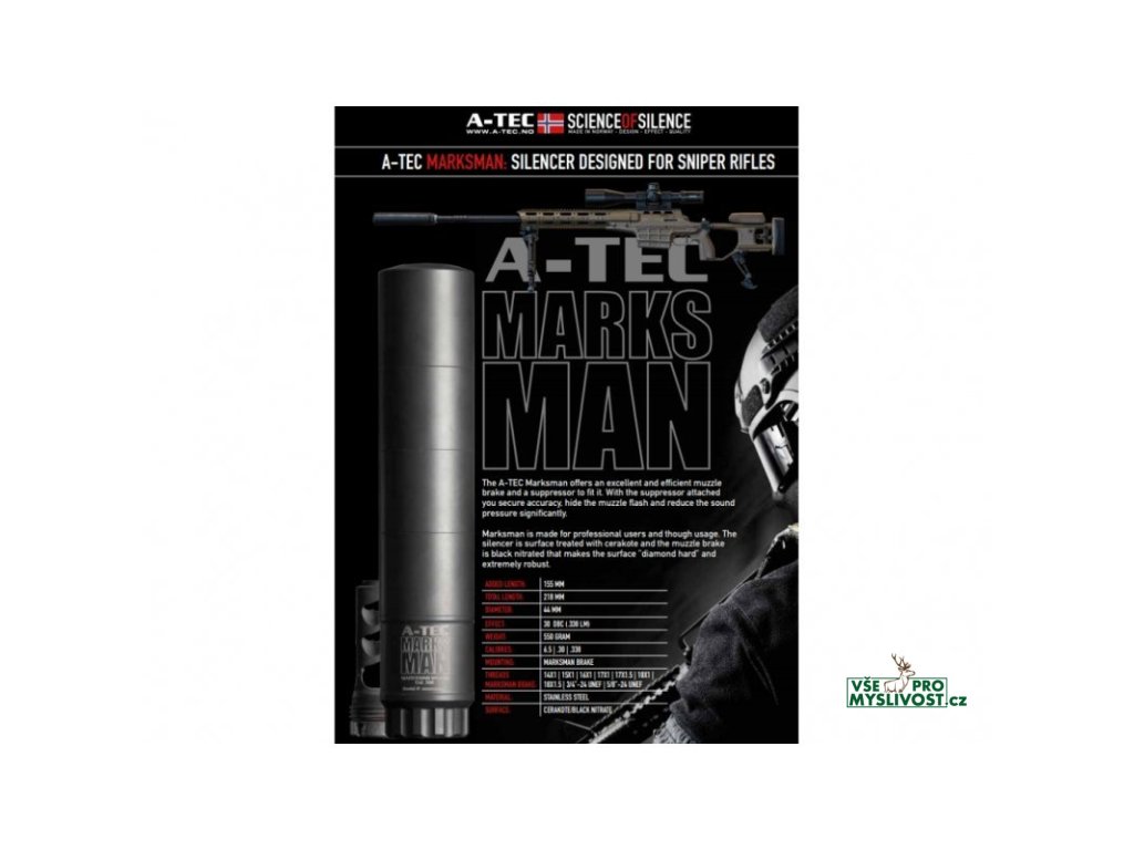 Nový, vylepšený model úsťové brzdy Marksman pro precizní pušky ke střelbě na dlouhé vzdálenosti s výrazným snížením zpětného rázu, pro upnutí tlumiče A-TEC Marksman. Tlumiče A-TEC Marksman jsou i oficiálním modelem nabízeným a používaným pro zbraně Accuracy International přímo na jejich úsťové brzdy.