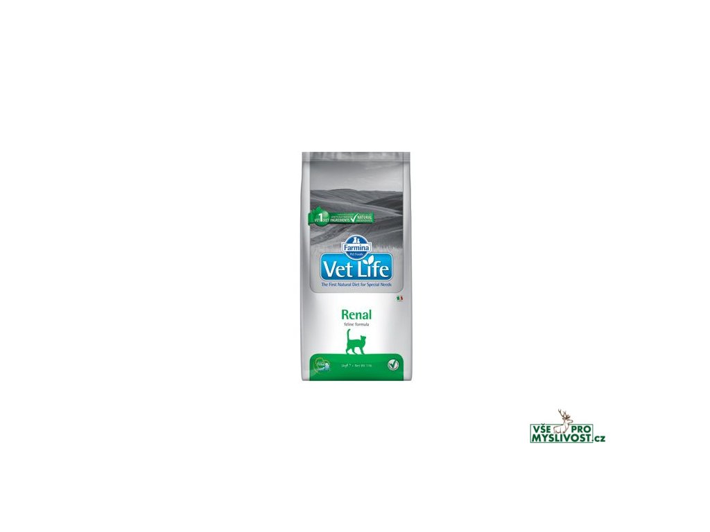 RenalFarmina Vet Life Renal je kompletní dietetické krmivo pro kočky určené pro podporu funkce ledvin v případě chronické nebo dočasné ledvinové nedostatečnosti.