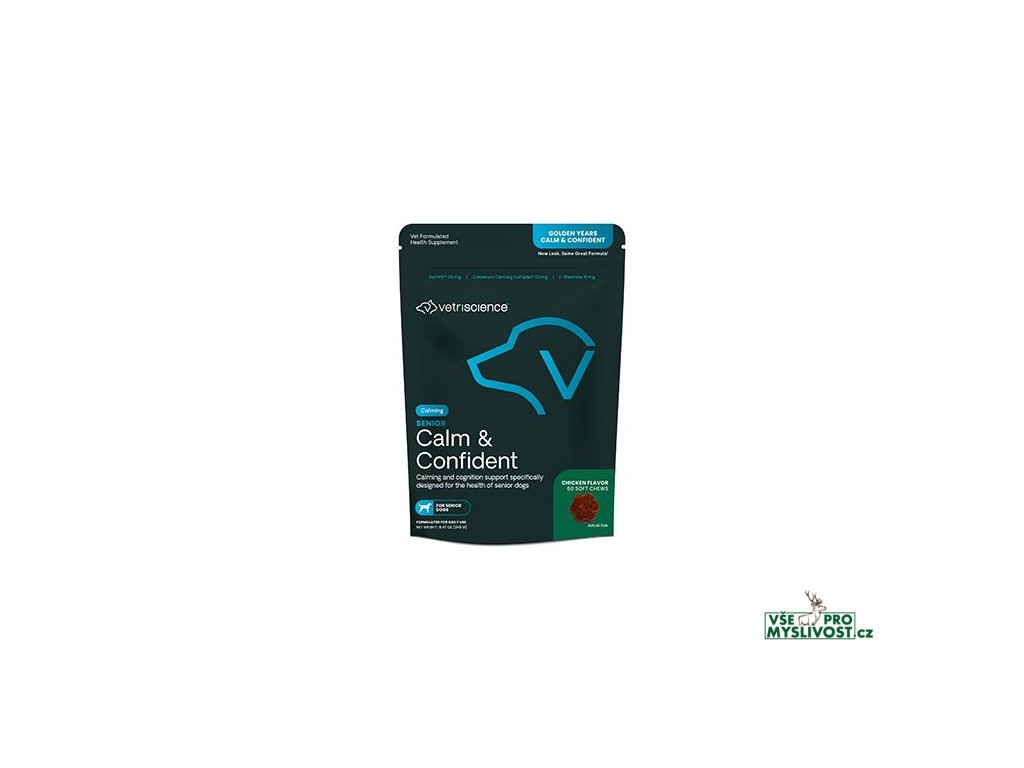 Senior Calm&Confident je speciálně vyvinut pro starší psy, aby pomohl zvládnout problémy stárnutí související s chováním zvířete, jako je například zmatenost či dezorientace. Klíčové složky Směs biopeptidů Colostrum Calming Complex® a čajový extrakt napomáhají podpoře kognitivních funkcí a klidného chování. Je klinicky prokázáno, že patentovaná forma fosfatidylserinu (Sharp-PS® Green) podporuje správnou funkci mozku, paměť a učení u stárnoucích psů. Pamlsky s příchutí kuřecích jater se snadno rozdělí na kousky a jsou vhodné pro psy s citlivým zažíváním.Účinné látky:
