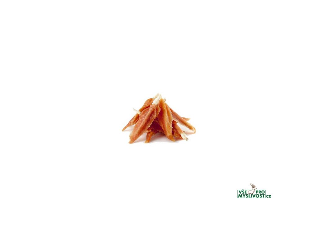 Složení: Kuřecí prsa 60%, hovězí 35%, kukuřičný škrob 1%, glycerol 2%, sorbitol 1,9%, sůl 0,1%
