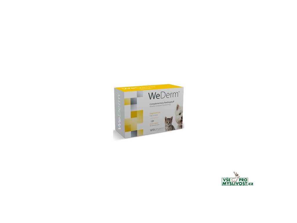 Pro zdravou kůži a srstVýživový doplněk pro psy a kočky s vysokým obsahem esenciálních mastných kyselin, vitamínů a minerálů určených k podpoře kožní funkce v případech dermatózy, svědění, vypadávání chlupů nebo jakéhokoliv jiného dermatologického projevu alergie. WeDerm ® zaručuje synergický účinek s protizánětlivým účinkem, snižuje potřebu steroidů, snižuje zánět a svědění a zlepšuje bariérový účinek pokožky podporující posilování meziproduktových epidermálních ceramidových lipidových vrstev.