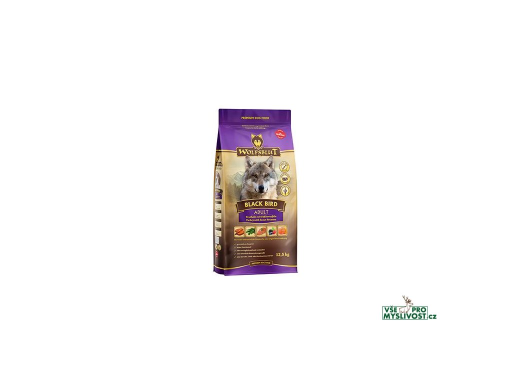 Vlci loví svou kořist od Skalistých hor Severní Ameriky, arktické tundry, hor a lesů Evropy až po pouště a stepi střední Asie. To jim dodává maso a vnitřnosti bohaté na živiny, ale také zeleninu, ovoce, bobule, kořeny a bylinky z obsahu žaludku kořisti. Obilí zde není zahrnuto. Vlk tak přijímá potřebné vitamíny, minerály, stopové prvky, enzymy a druhotné rostlinné látky. Vzhledem k tomu, že vlk je předkem všech psů, naše suché krmivo pro psy Wolfsblut je založeno na přirozených stravovacích návycích vlka. Obsahuje hodně masa nebo ryb v kombinaci se superpotravinami, které obsahují hodnotné ingredience – stejně jako v přírodě, bez obilovin. Náš výběr výjimečných druhů masa a superpotravin bohatých na živiny vychází z vlčích biotopů a jejich pestré stravy. Wolfsblut nabízí každému psovi druhově vhodnou a originální stravu a díky rozmanitosti odrůd si každý najde něco, co snese. Receptura suchého krmiva BLACK BIRD kombinuje výživu vlků s nejnovějšími vědeckými poznatky o správné výživě psů.