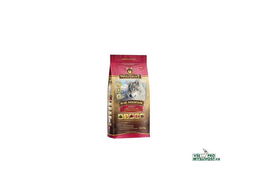 Vlci loví svou kořist od Skalistých hor Severní Ameriky, arktické tundry, hor a lesů Evropy až po pouště a stepi střední Asie. To jim dodává maso a vnitřnosti bohaté na živiny, ale také zeleninu, ovoce, bobule, kořeny a bylinky z obsahu žaludku kořisti. Obilí zde není zahrnuto. Vlk tak přijímá potřebné vitamíny, minerály, stopové prvky, enzymy a druhotné rostlinné látky. Vzhledem k tomu, že vlk je předkem všech psů, naše suché krmivo pro psy Wolfsblut je založeno na přirozených stravovacích návycích vlka. Obsahuje hodně masa nebo ryb v kombinaci se superpotravinami, které obsahují hodnotné ingredience – stejně jako v přírodě, bez obilovin. Náš výběr výjimečných druhů masa a superpotravin bohatých na živiny vychází z vlčích biotopů a jejich pestré stravy. Wolfsblut nabízí každému psovi druhově vhodnou a originální stravu a díky rozmanitosti odrůd si každý najde něco, co snese. Receptura suchého krmiva BLUE MOUNTAIN kombinuje výživu vlků s nejnovějšími vědeckými poznatky o správné výživě psů.