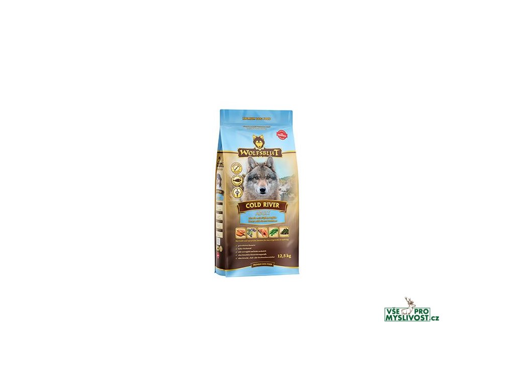 Vlci loví svou kořist od Skalistých hor Severní Ameriky, arktické tundry, hor, lesů a řek Evropy až po pouště a stepi střední Asie. To jim dodává maso a ryby a vnitřnosti bohaté na živiny, ale také zeleninu, ovoce, bobule, kořeny a bylinky prostřednictvím obsahu žaludku kořisti. Obilí zde není zahrnuto. Vlk tak přijímá potřebné vitamíny, minerály, stopové prvky, enzymy a druhotné rostlinné látky. Vzhledem k tomu, že vlk je předkem všech psů, naše suché krmivo pro psy Wolfsblut je založeno na přirozených stravovacích návycích vlka. Obsahuje hodně masa nebo ryb v kombinaci se superpotravinami, které obsahují hodnotné ingredience – stejně jako v přírodě, bez obilovin. Náš výběr výjimečných druhů masa a superpotravin bohatých na živiny vychází z vlčích biotopů a jejich pestré stravy. Wolfsblut nabízí každému psovi druhově vhodnou a originální stravu a díky rozmanitosti odrůd si každý najde něco, co snese. Receptura suchého krmiva COLD RIVER kombinuje výživu vlků s nejnovějšími vědeckými poznatky o správné výživě psů.