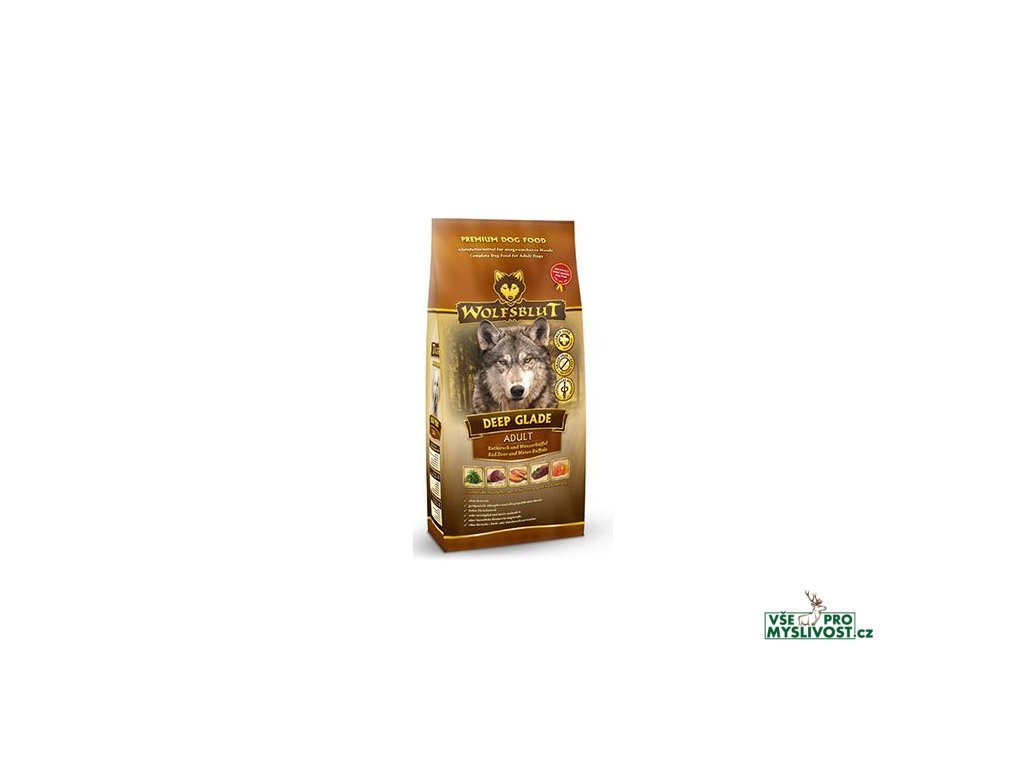 Vlci loví svou kořist od Skalistých hor Severní Ameriky, arktické tundry, hor a lesů Evropy až po pouště a stepi střední Asie. To jim dodává maso a vnitřnosti bohaté na živiny, ale také zeleninu, ovoce, bobule, kořeny a bylinky z obsahu žaludku kořisti. Obilí zde není zahrnuto. Vlk tak přijímá potřebné vitamíny, minerály, stopové prvky, enzymy a druhotné rostlinné látky. Vzhledem k tomu, že vlk je předkem všech psů, naše suché krmivo pro psy Wolfsblut je založeno na přirozených stravovacích návycích vlka. Obsahuje hodně masa nebo ryb v kombinaci se superpotravinami, které obsahují hodnotné ingredience – stejně jako v přírodě, bez obilovin. Náš výběr výjimečných druhů masa a superpotravin bohatých na živiny vychází z vlčích biotopů a jejich pestré stravy. Wolfsblut nabízí každému psovi druhově vhodnou a originální stravu a díky rozmanitosti odrůd si každý najde něco, co snese. Receptura suchého krmiva DEEP GLADE ADULT kombinuje výživu vlků s nejnovějšími vědeckými poznatky o správné výživě psů.