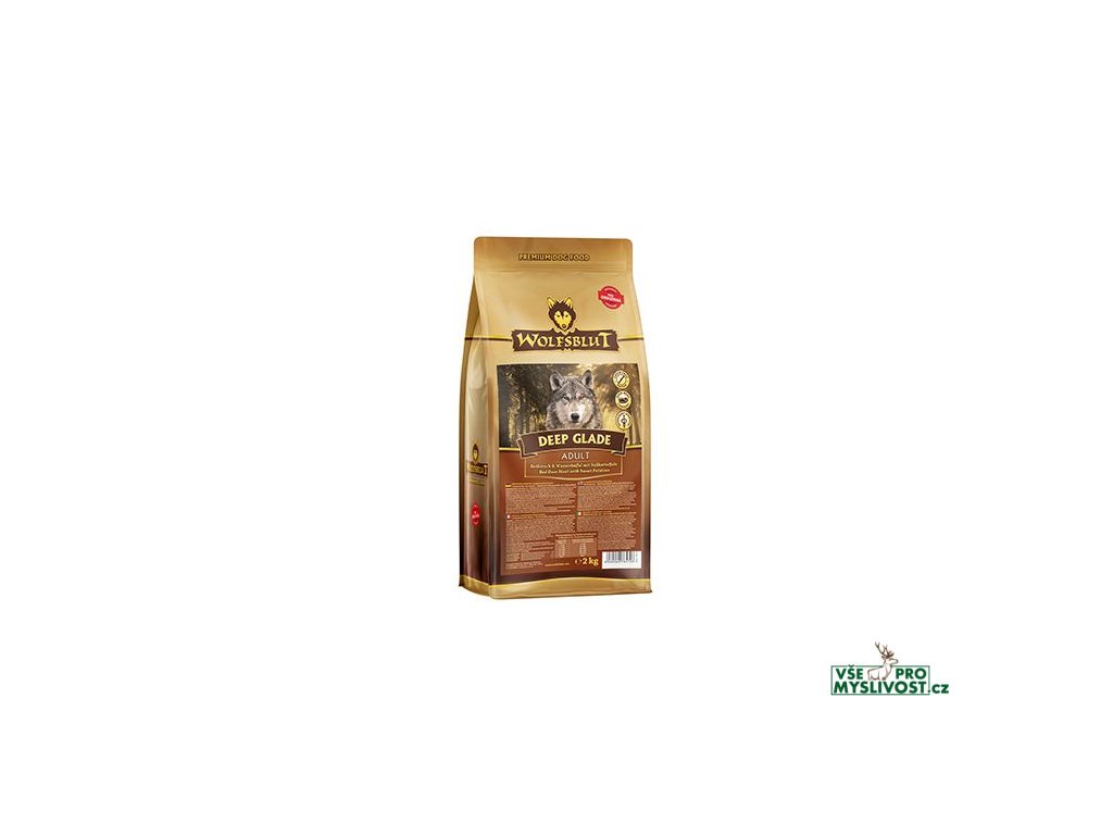 Vlci loví svou kořist od Skalistých hor Severní Ameriky, arktické tundry, hor a lesů Evropy až po pouště a stepi střední Asie. To jim dodává maso a vnitřnosti bohaté na živiny, ale také zeleninu, ovoce, bobule, kořeny a bylinky z obsahu žaludku kořisti. Obilí zde není zahrnuto. Vlk tak přijímá potřebné vitamíny, minerály, stopové prvky, enzymy a druhotné rostlinné látky. Vzhledem k tomu, že vlk je předkem všech psů, naše suché krmivo pro psy Wolfsblut je založeno na přirozených stravovacích návycích vlka. Obsahuje hodně masa nebo ryb v kombinaci se superpotravinami, které obsahují hodnotné ingredience – stejně jako v přírodě, bez obilovin. Náš výběr výjimečných druhů masa a superpotravin bohatých na živiny vychází z vlčích biotopů a jejich pestré stravy. Wolfsblut nabízí každému psovi druhově vhodnou a originální stravu a díky rozmanitosti odrůd si každý najde něco, co snese. Receptura suchého krmiva DEEP GLADE ADULT kombinuje výživu vlků s nejnovějšími vědeckými poznatky o správné výživě psů.