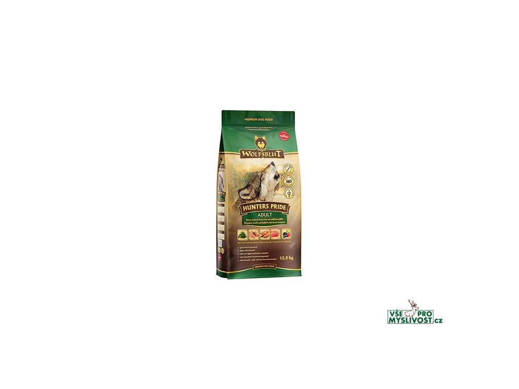 Vlci loví svou kořist od Skalistých hor Severní Ameriky, arktické tundry, hor a lesů Evropy až po pouště a stepi střední Asie. To jim dodává maso a vnitřnosti bohaté na živiny, ale také zeleninu, ovoce, bobule, kořeny a bylinky z obsahu žaludku kořisti. Obilí zde není zahrnuto. Vlk tak přijímá potřebné vitamíny, minerály, stopové prvky, enzymy a druhotné rostlinné látky. Vzhledem k tomu, že vlk je předkem všech psů, naše suché krmivo pro psy Wolfsblut je založeno na přirozených stravovacích návycích vlka. Obsahuje hodně masa nebo ryb v kombinaci se superpotravinami, které obsahují hodnotné ingredience – stejně jako v přírodě, bez obilovin. Náš výběr výjimečných druhů masa a superpotravin bohatých na živiny vychází z vlčích biotopů a jejich pestré stravy. Wolfsblut nabízí každému psovi druhově vhodnou a originální stravu a díky rozmanitosti odrůd si každý najde něco, co snese. Suché krmivo HUNTERS PRIDE kombinuje výživu vlků s nejnovějšími vědeckými poznatky o správné výživě psů.