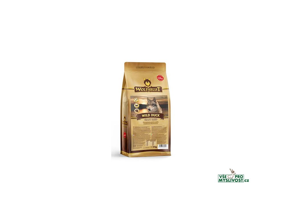 Vlci loví svou kořist od Skalistých hor Severní Ameriky, arktické tundry, hor a lesů Evropy až po pouště a stepi střední Asie. To jim dodává maso a vnitřnosti bohaté na živiny, ale také zeleninu, ovoce, bobule, kořeny a bylinky z obsahu žaludku kořisti. Obilí zde není zahrnuto. Vlk tak přijímá potřebné vitamíny, minerály, stopové prvky, enzymy a druhotné rostlinné látky. Vzhledem k tomu, že vlk je předkem všech psů, naše suché krmivo pro psy Wolfsblut je založeno na přirozených stravovacích návycích vlka. Obsahuje hodně masa nebo ryb v kombinaci se superpotravinami, které obsahují hodnotné ingredience – stejně jako v přírodě, bez obilovin. Náš výběr výjimečných druhů masa a superpotravin bohatých na živiny vychází z vlčích biotopů a jejich pestré stravy. Wolfsblut nabízí každému psovi druhově vhodnou a originální stravu a díky rozmanitosti odrůd si každý najde něco, co snese. Receptura suchého krmiva WILD DUCK GIANT kombinuje výživu vlků s nejnovějšími vědeckými poznatky o správné výživě psů.