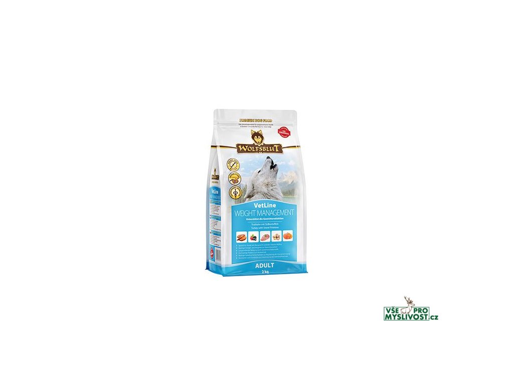 WOLFSBLUT VetLine WEIGHT MANAGEMENT je kompletní dietní krmivo pro dospělé psy pro redukci nadváhy a regulaci přísunu glukózy (diabetes mellitus).